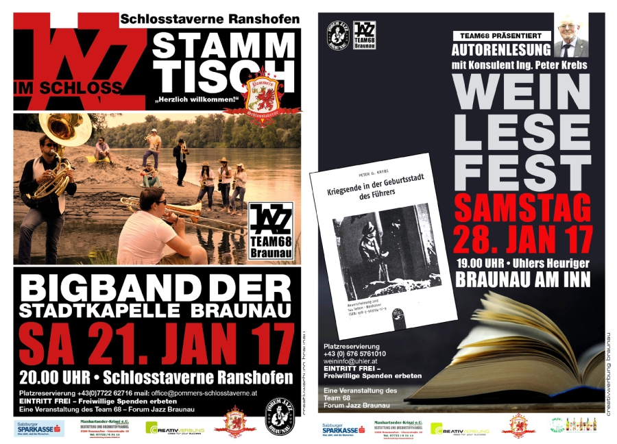 Buchpräsentation mit Autorenlesung Konsulent Ing. Peter Krebs, Kriegsende in der Geburtsstadt des Führers in der Vinothek Uhler, Braunau am 28. Januar 2017 um 19.00 Uhr