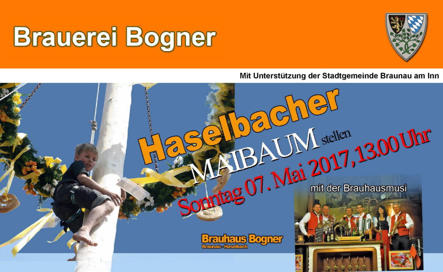 Auch heuer wird am 07. Mai 2017 um 13.00 Uhr der Maibaum in dem Braunauer Stadtteil Haselbach traditionell aufgestellt. Mehr Info unter: www.hausbrauerei-bogner.at
