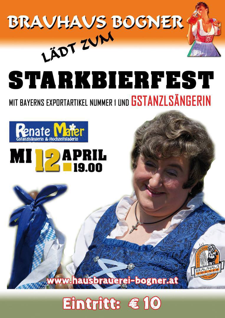 Am Mittwoch den 12. April 2017 ab 19.00 Uhr findet im Brauhaus Bogner Starkbierfinale mit Rottaler Stimmungskanone und Gstanzlsängerin Renate Maier.