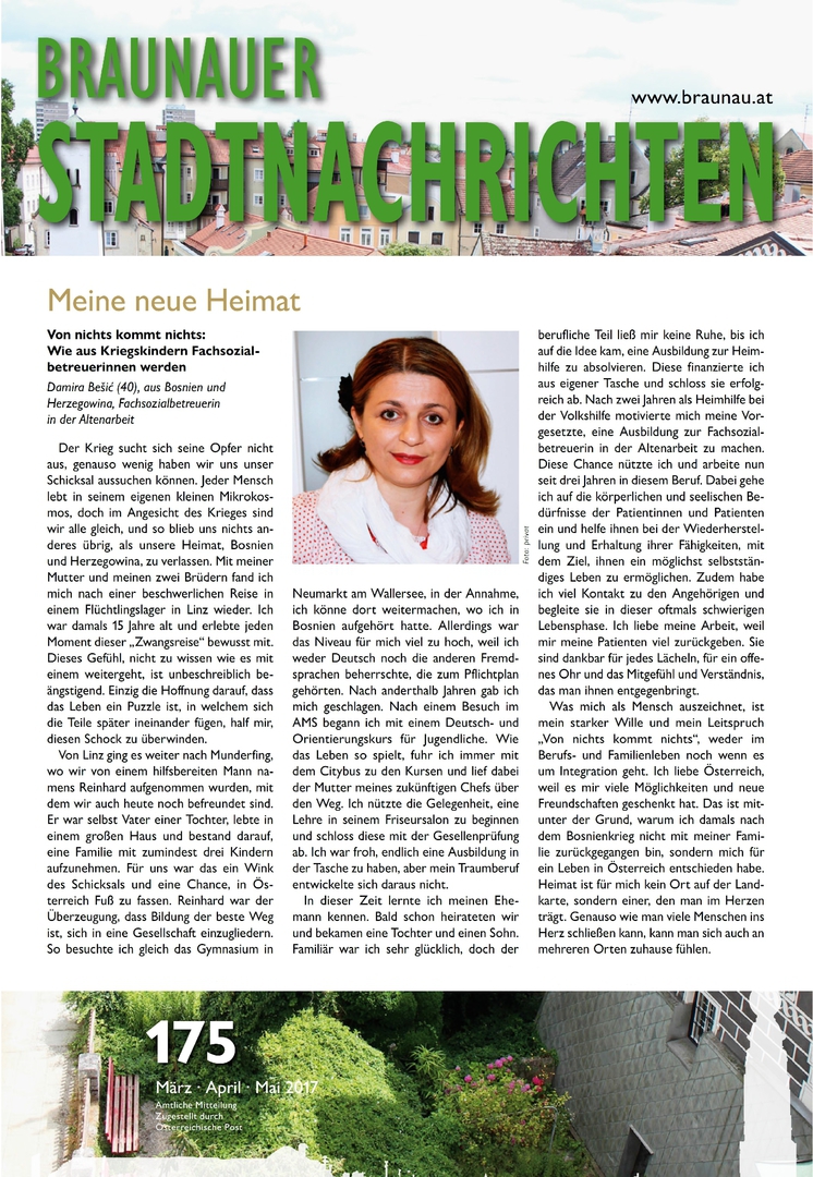 Braunauerin Damira Bešić, Fachsozialbetreuerin in der Altenarbeit