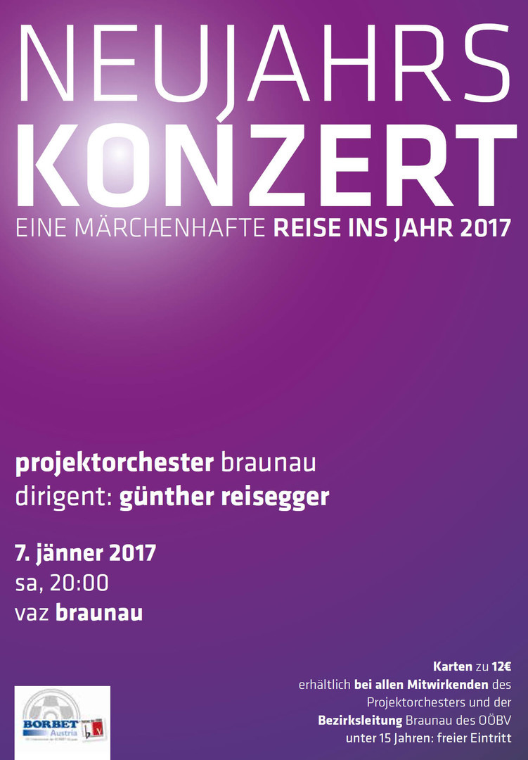 Neujahrskonzert mit dem Projektorchester Braunau am Samstag, 7. Jänner um 20 Uhr im VAZ Braunau