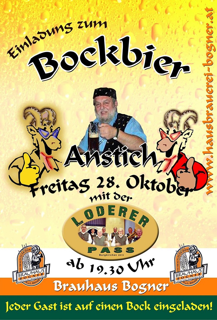 Bockbier Anstich mit einem GRATIS Bock für jeden, und musikalischer Bockbegleitung durch die "LODERER PASS"