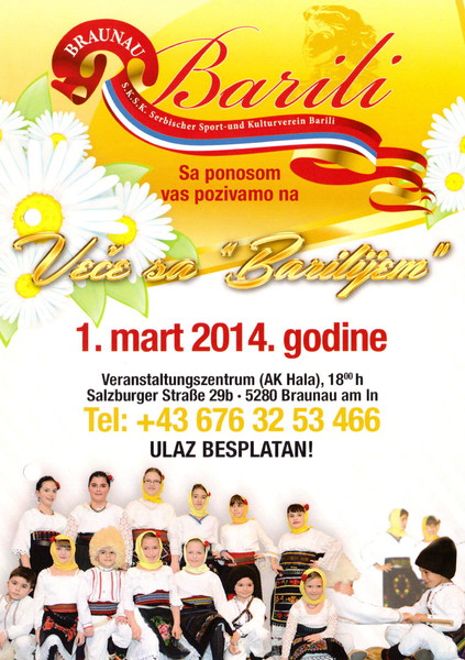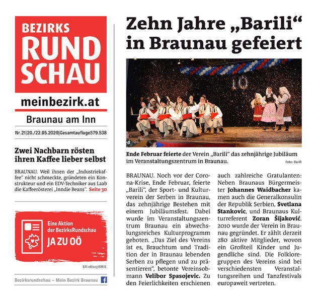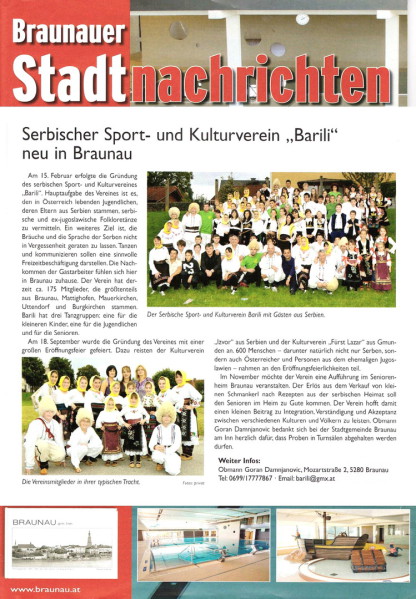 „Feststellbar ist, dass der Sport und Kulturverein der Serben in Braunau BARILI durch seine Arbeit und die zahlreichen Mitglieder, in den vergangenen Jahren die Stadt und die Region kräftig geprägt hat“, betont Braunaus Kulturreferent Zoran Šijaković.
